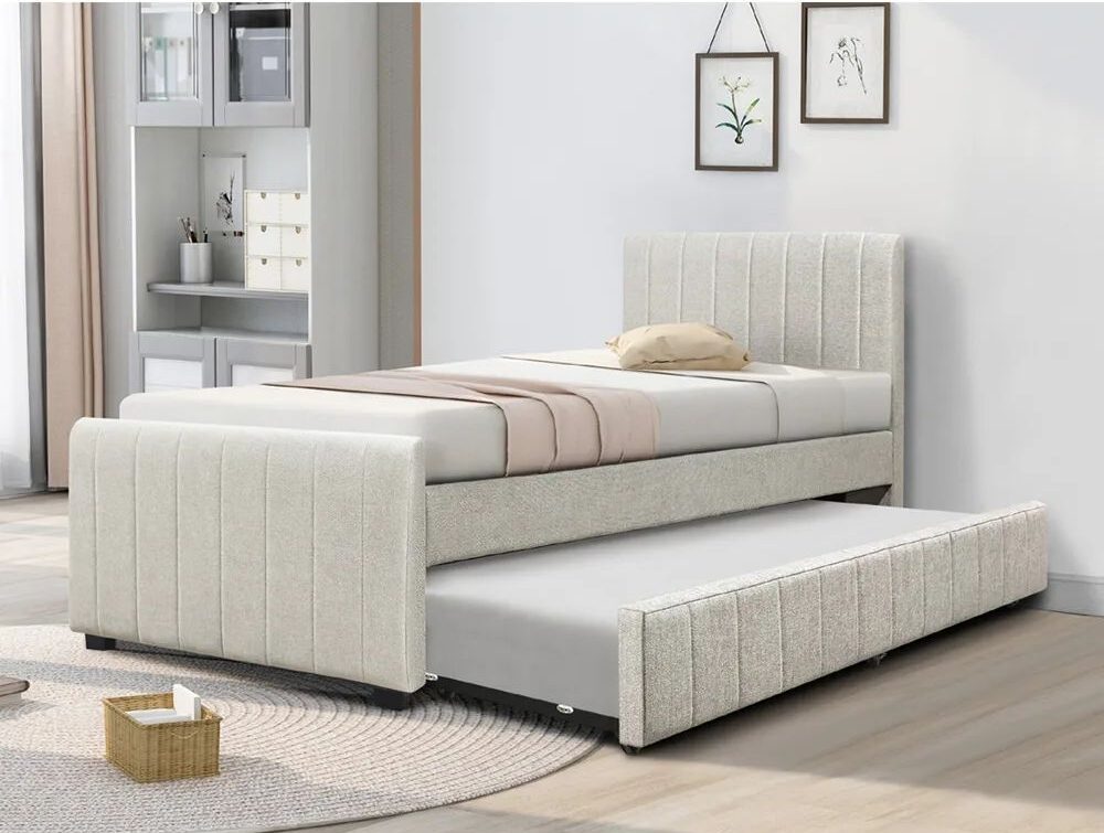 Односпальная кровать с мягкой обивкой, модель MONA, с дополнительной кроватью