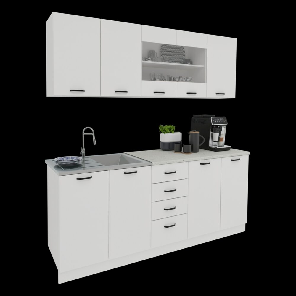 Кухня включает в себя Нижние шкафы с регулируемыми ножками, что позволяет легко убирать под шкафами для обеспечения максимальной гигиены.