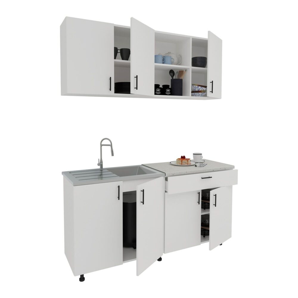 Просторное место для хранения – Включает верхние и нижние шкафы с полками для максимального удобства.