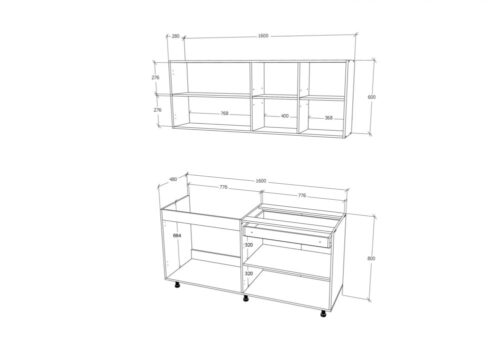 - Нижние шкафы: Ширина 160 см | Высота 82 см | Глубина 50 см.