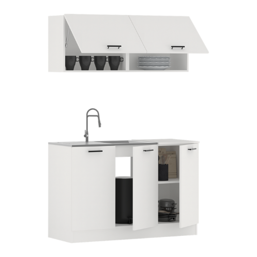 מטבח מודרני עם קלאפות בגוון לבן ברוחב 1.2 מטר כולל כיור נירוסטה – דגם לוסי LUCY