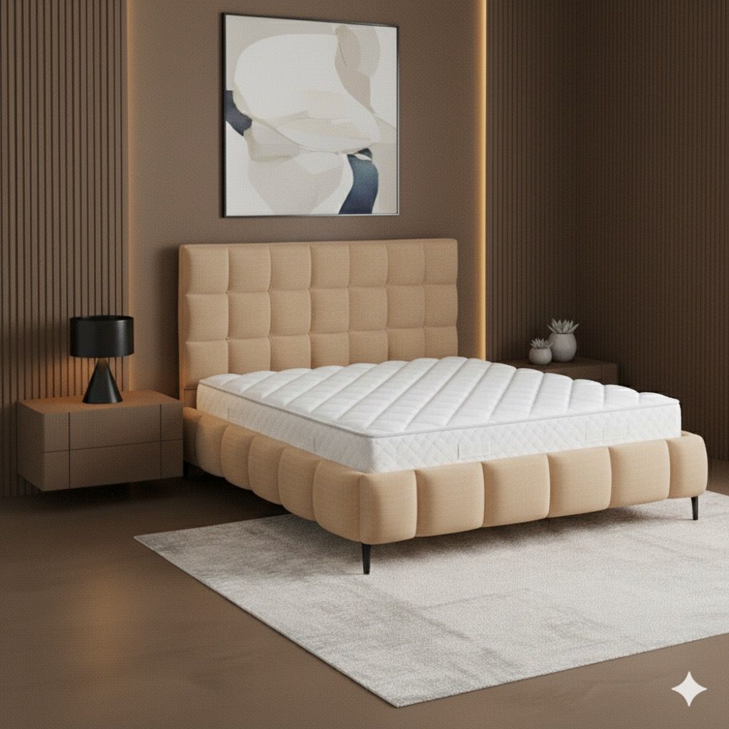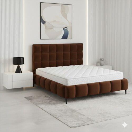 מיטה יוקרתית בעיצוב מודרני – דגם קוביות, המעניקה לחדר השינה מראה אלגנטי ומרשים. המיטה מיוצרת בהתאמה אישית לפי גודל וצבע, ומגיעה בבד קטיפה איכותי, נעים למגע וקל לניקוי.