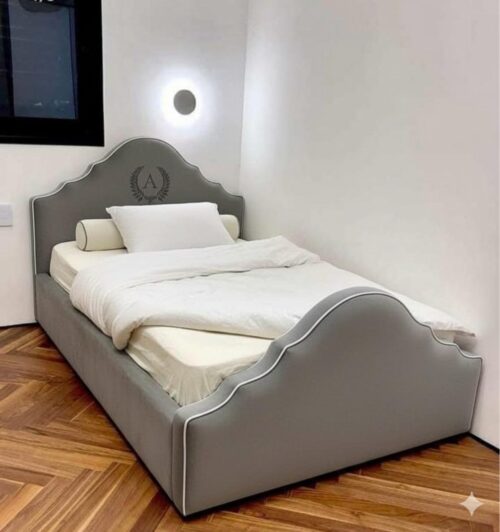 המיטה בנויה מעץ מלא חזק ועמיד, עם ריפוד רך ואיכותי שקל מאוד לנקות ולתחזק.