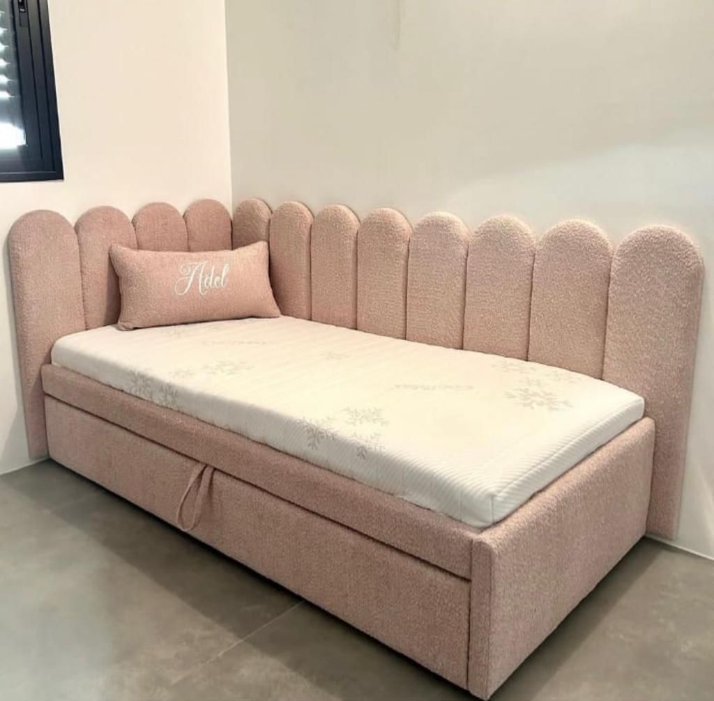 מיטת ילדים מעוצבת ומרופדת בדגם ברבי, משלבת בין פרקטיות, נוחות ואסתטיקה רכה שמתאימה באופן מושלם לחדרי ילדים. המיטה מגיעה עם מיטת חבר נשלפת, ומתאימה לאירוח יומיומי קל ונוח. הדגם מיוצר בהתאמה אישית מלאה – ניתן לבחור את גודל המיטה, צבע הריפוד וסוג הבד. כל תהליך הייצור נעשה ישירות במרפדייה, ללא פערי תיווך – מה שמבטיח התאמה מדויקת, איכות גבוהה ומחיר משתלם במיוחד.