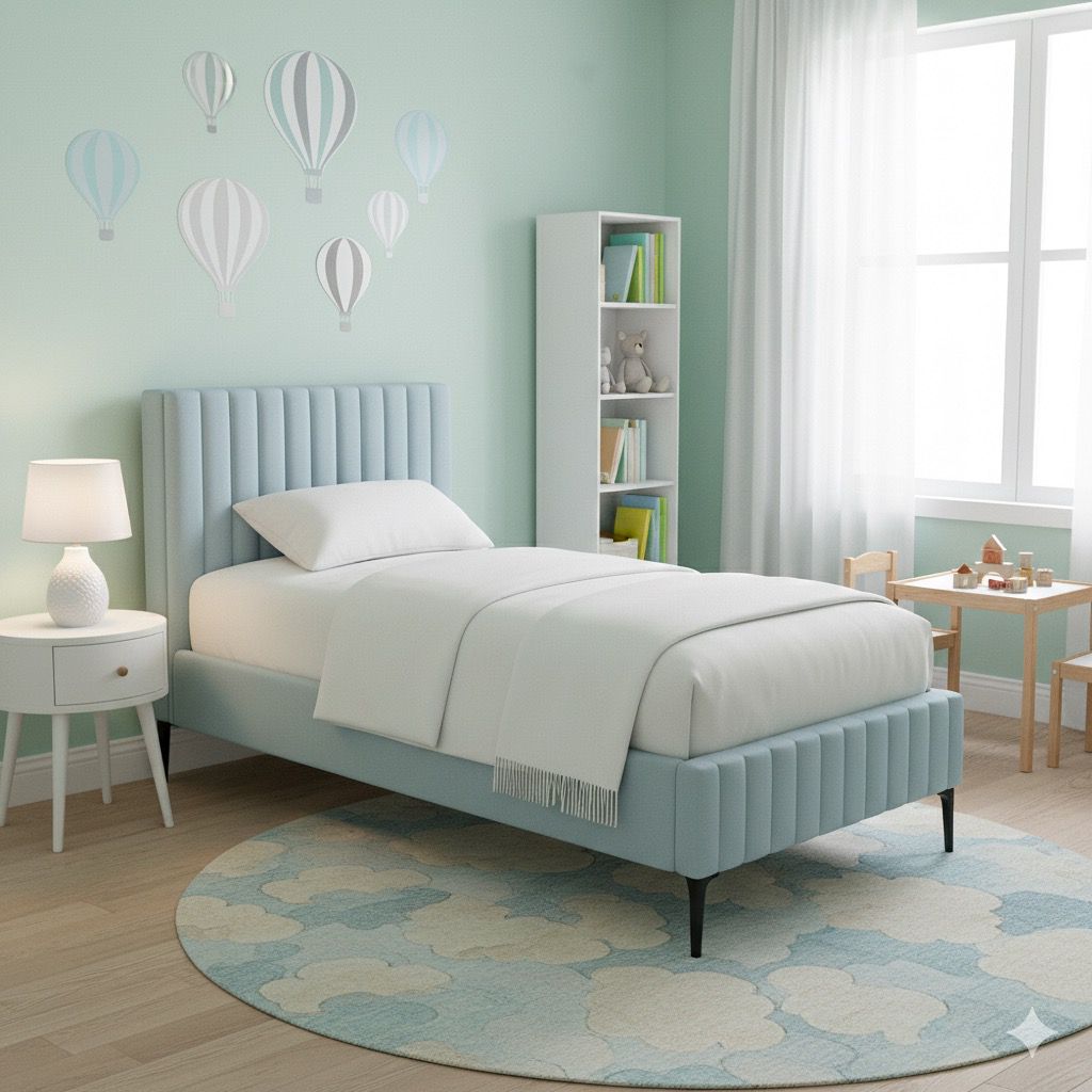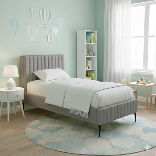 מיטת ילדים מרופדת מבד קטיפה איכותי, דגם ליאן. עיצוב אלגנטי ונוח, קל לניקוי ועמיד לשימוש יומיומי.