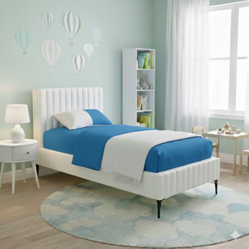 מיטת הילדים דגם kids מציעה שילוב מושלם בין נוחות, איכות ועיצוב יוקרתי. המיטה מרופדת בבד קטיפה רך ונעים למגע, קל לניקוי ומתאים במיוחד לחדרי ילדים. הפסים מוסיפים סטייל לכל חלל.