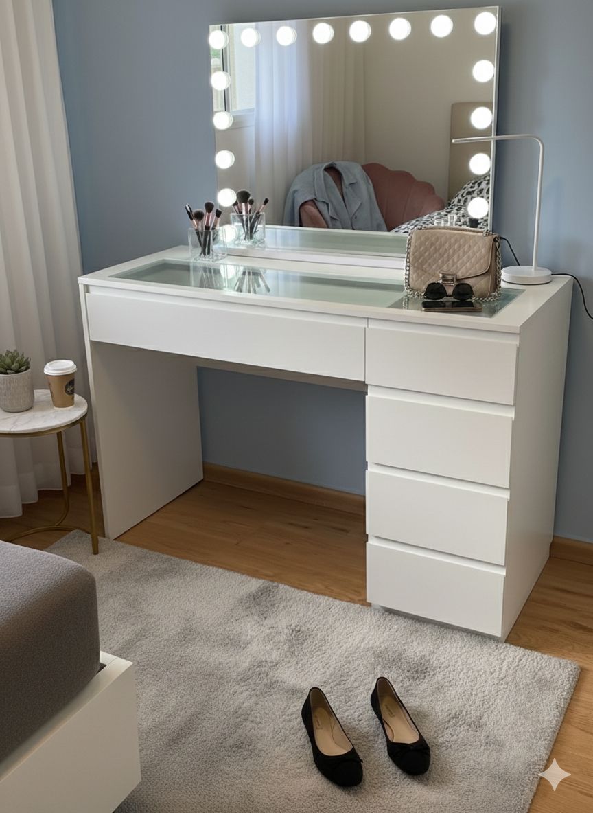 שידת איפור דגם אירמז מעניקה שילוב מושלם בין פרקטיות לאסתטיקה.